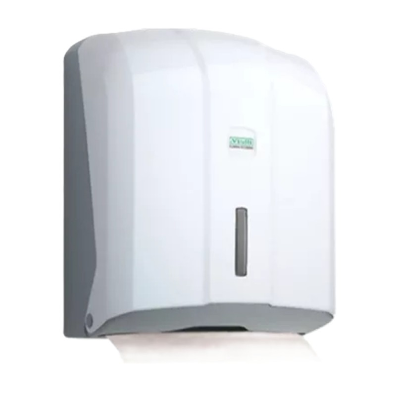 Hajtogatott kéztörlő papír adagoló, amely a legtöbb Z vagy V hajtott kéztörlővel utántölthető. Gazdaságos és egyszerűen utántölthető adagoló.