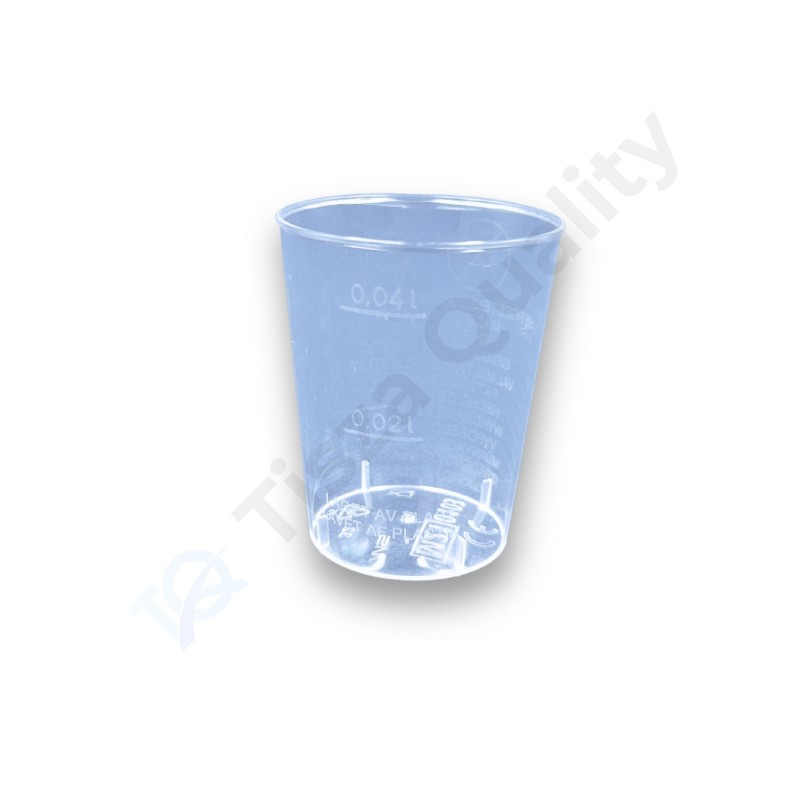 50 db/csomag - 40 csomag/karton - Keményfalú esztétikus műanyag snapszos pohár 4cl-nél űrméretjelölésselCímzett :